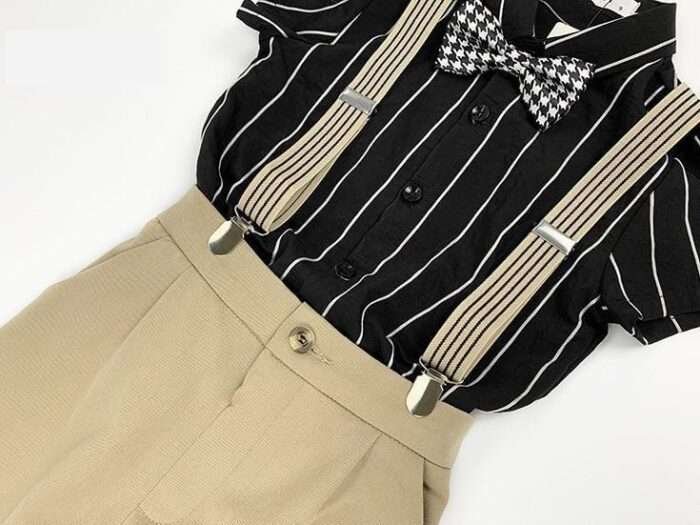 Colour: black black shorts suit, white and white shorts suit, dark grey black trousers suit, ivory white and white trousers suit, beige white short-sleeved black trousers, grey black short-sleeved khaki trousers